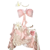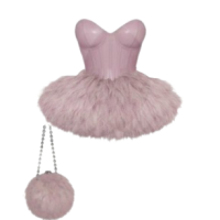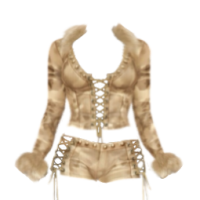 Beige Y2K Lace Up Set With Fur