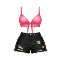 pink bikini top w/ distressed black shorts