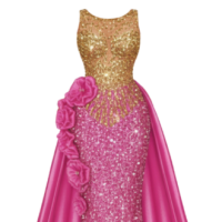Gold and Hot Pink Sequined Gown